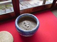 ↑二階廊下の火鉢。飾りじゃなく、本気の暖房器具。